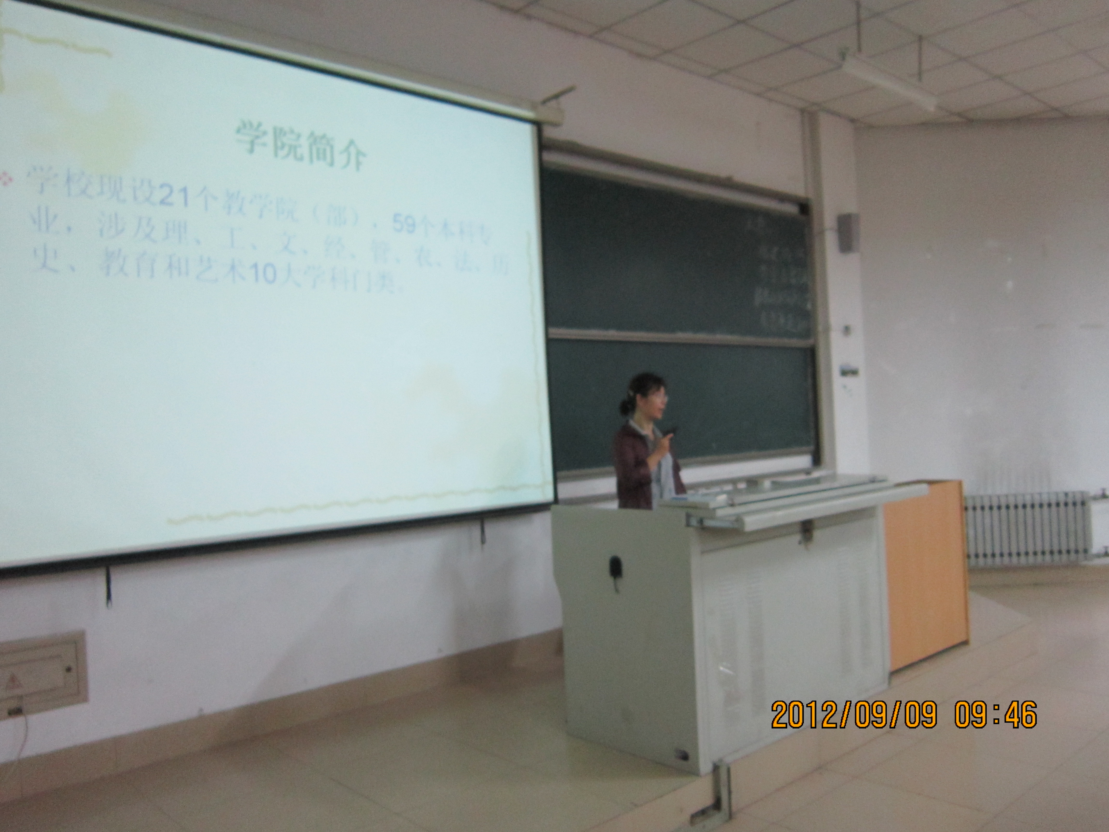 9月9日,新生报到第二天,我院新生入学教育正式拉开帷幕。2012级辅导员王秋霞老师在8122教师为新生上第一堂入学教育课。