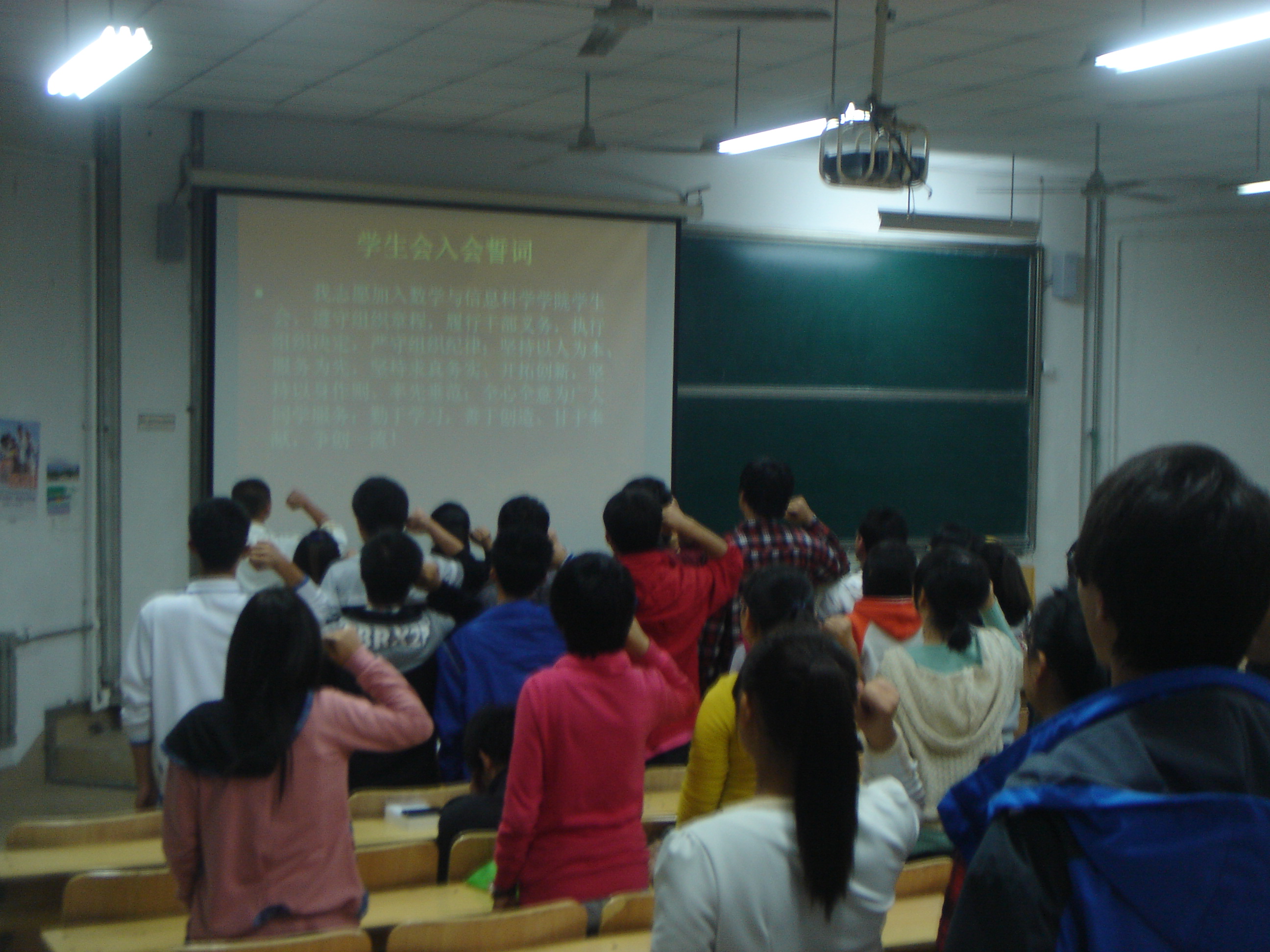 10月26日下午,数学与信息科学学院在8#122教室召开第十二届学生会成立大会。辅导员办公室负责同志、全体辅导员以及新一届学生会成员、2011级和2012级主要学生干部参加了成立大会。