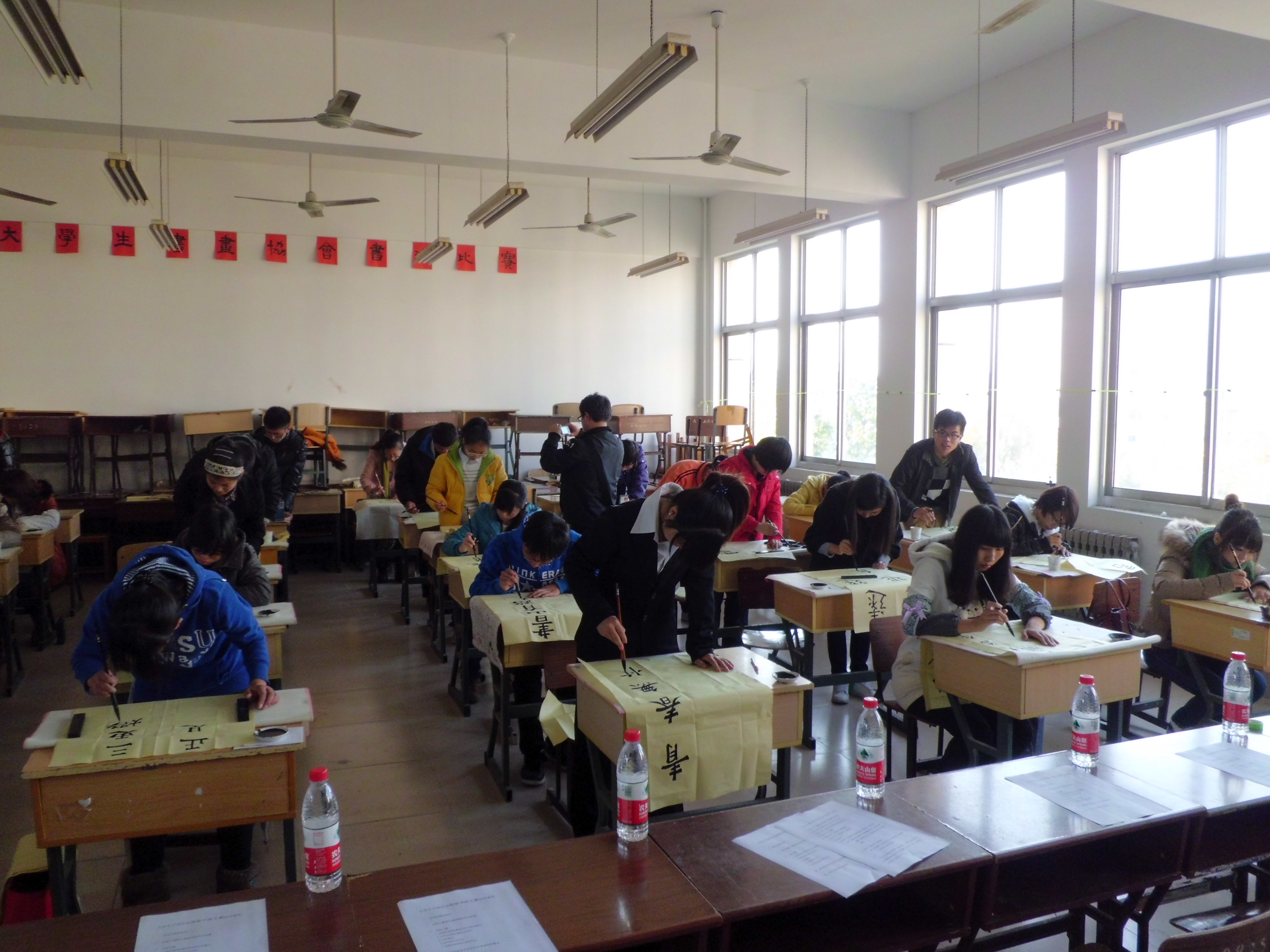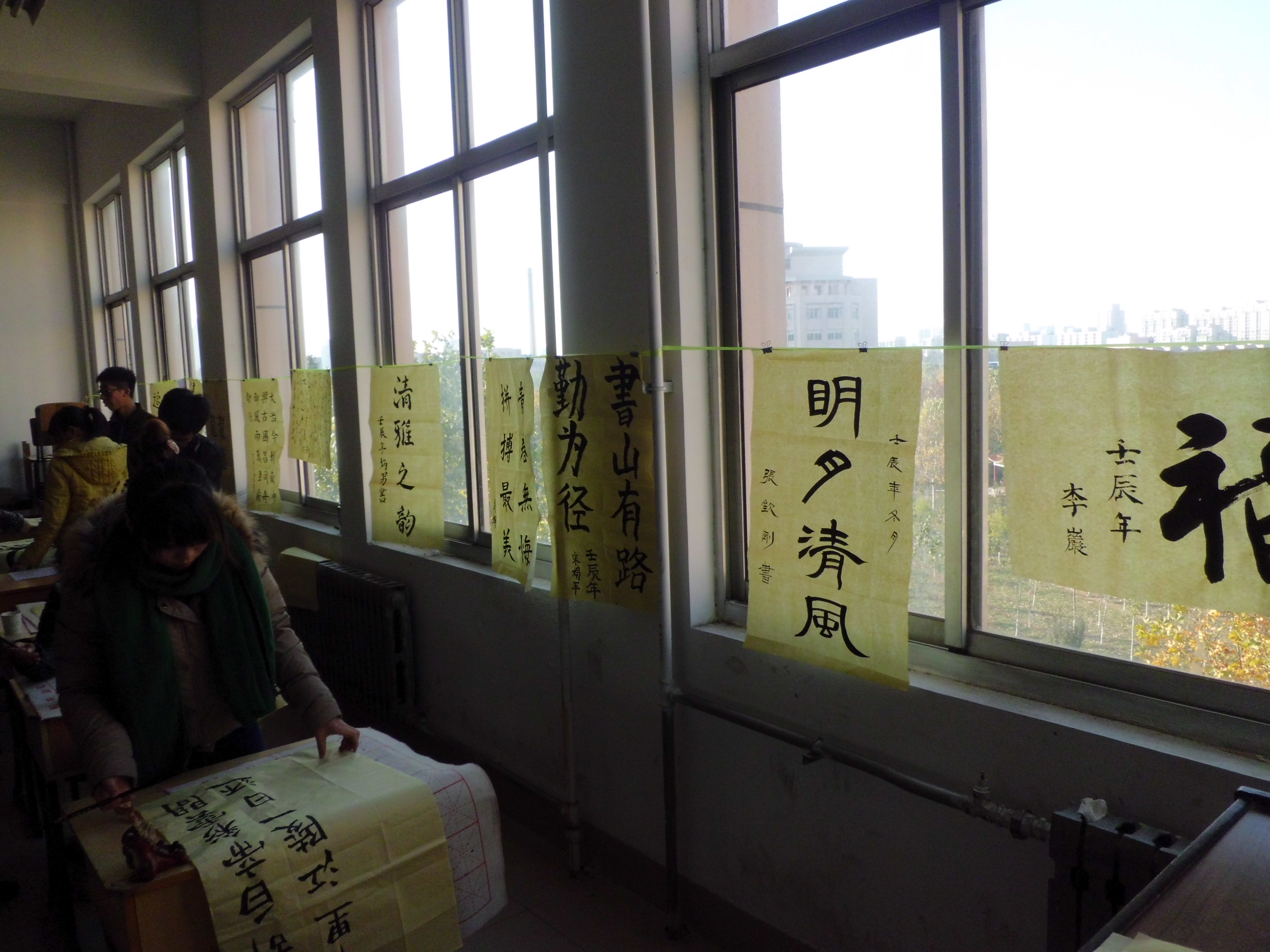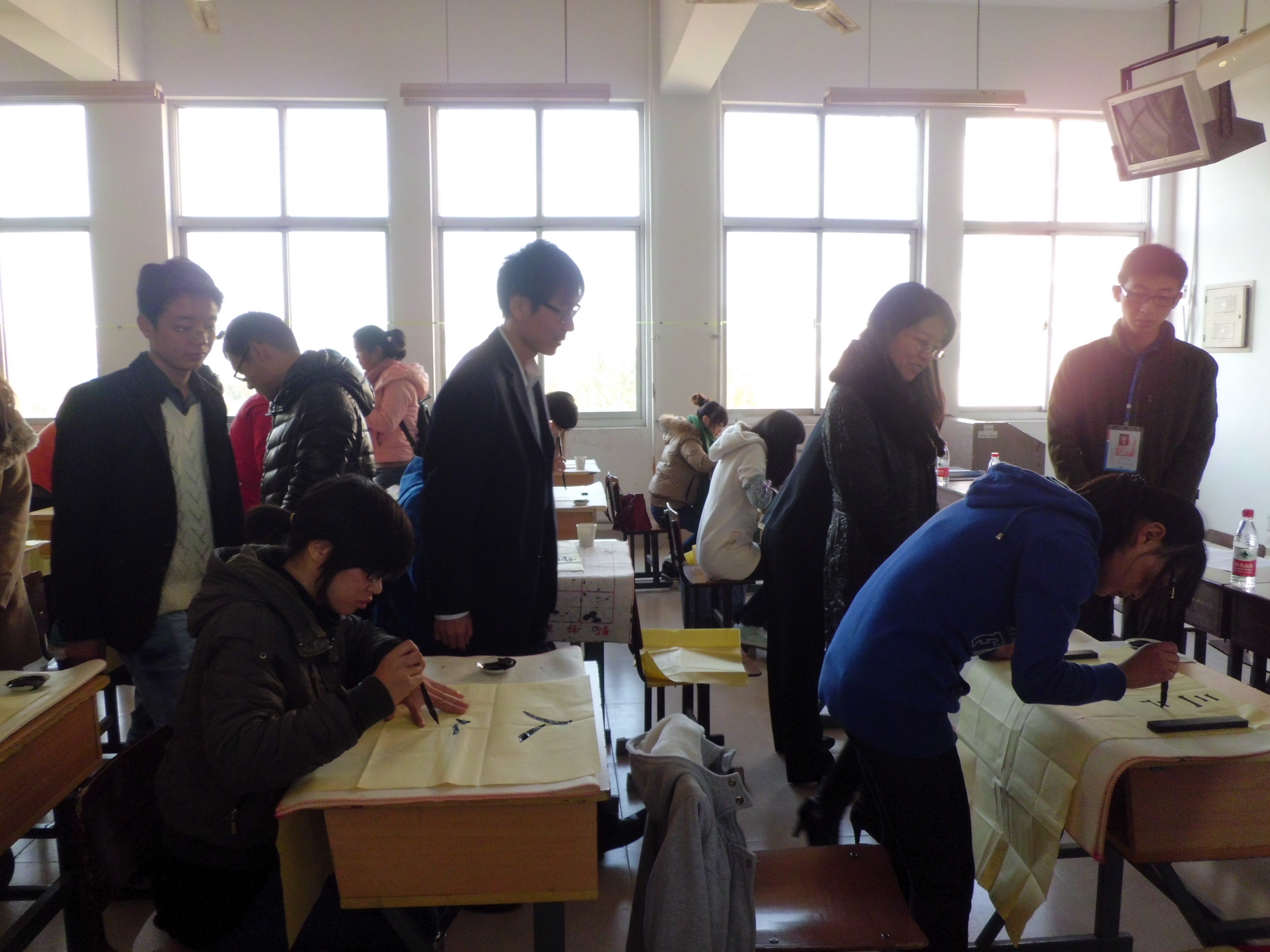 11月15日下午,大学生书画协会在6#405举办了书法比赛。出席本次活动的有潍坊学院团委书记周莹,团委副书记社团工作部部长徐加金,数学与信息科学学院团总支书记、辅导员办公室主任郑栋鹏,第十二届校学生会主席郑尚志,校社联主席姜爱鑫,数学学院第十二届学生会主席于晓枫、社联主席张淑洁,书画协会特聘书法教师秦程斌以及校社团联合会的副主席和各部部长。