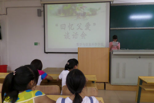 为了增强同学们的与家人的融洽关系,加强同学们关爱父母的知识。我院于6月16日举办了以“父爱如山,回忆父爱”为主题的交流会活动,参加本次活动的有:学生会主席于晓枫,副主席张海龙、李银涛、高占、郝春玲,各部门部长以及全体2012级学生。