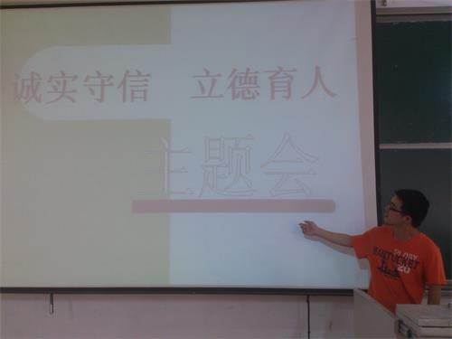 本次活动以“诚实守信,立德育人”为主题,通过多样化的主题教育活动宣讲诚实守信事迹,促使学生树立诚信观念,将诚信教育转化为大学生的素养。班会上,由各班级推选出的代表们就如何增强荣辱感,怎样诚实守信举出很多真实的事例,给同学们阐述了注重诚信的重要性和必要性。大学校园中,有很多诚信缺失的现象:考试舞弊、剽窃论文、恶意拖欠助学贷款等等,这些行为与一个大学生的身份格格不入。最后,学生会主席于晓枫就此次会议进行了总结,大学生诚信教育,不仅关系到学风的建设和人才的培养,更影响着和谐社会的道德建设,他勉励大家要做一个诚信的人,端正学习态度,以崭新的精神面貌迎接期末考试的挑战。“诚实守信 立德育人”主题班会圆满结束。