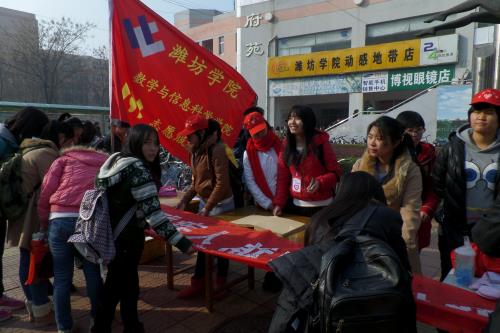 自从“1+1”志愿服务队与潍坊盲校签订助学协议以来,志愿者们积极开展爱心活动。在活动现场,“1+1”志愿服务队的志愿者们向参与活动的同学讲述盲童们的故事,通过宣传展板用图片帮助大家了解盲童们的学习生活。驻足前来奉献爱心的同学络绎不绝,他们认真咨询孩子们的愿望,提出自己的想法,贡献自己力所能及的力量。不知不觉中,18位初中生盲童的心愿均在许多爱心人士的帮助下得以实现。志愿者爱心条幅上密密麻麻写满了爱心人士的名字和祝福语,令在场的同学感动不已。“奉献自己的爱心,温暖盲童孩子们的心。希望能有更多的人加入,将爱心传递下去,这也是我们的初衷。”志愿队队长张涛在接受记者采访的时候如是说,并表示了对志愿服务事业的信心。