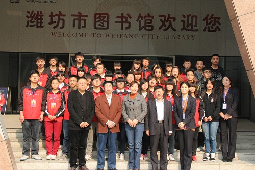 3月24号上午8点,潍坊学院我院1+1志愿服务队,在总队长张涛的带领下参加潍坊市图书馆大学生青年志愿者培训大会暨“潍坊学院大学生青年志愿者潍坊市图书馆社会实践基地”签约挂牌仪式。出席此次会议的还有市图书馆馆长郑晓光,潍坊学院团委副书记张晓静,潍坊学院我院团总支书记郑栋鹏,市图书馆副馆长宫昌利,辅导部主任林娟,办公室主任吴宏伟等领导。
