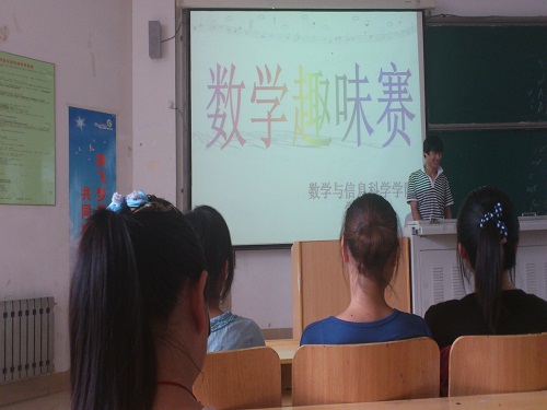 期中考试将近,为了提高同学们备战期中考试的精神状态,我院学习部于5月22日晚7:00在8#122举办了趣味数学赛。出席本次活动的有:学生会主席李昌明,副主席潘婷,网络部部长李中杰以及各班班长和团支书。参加此次比赛的是大一各班派出的优秀代表组成的六支队伍。