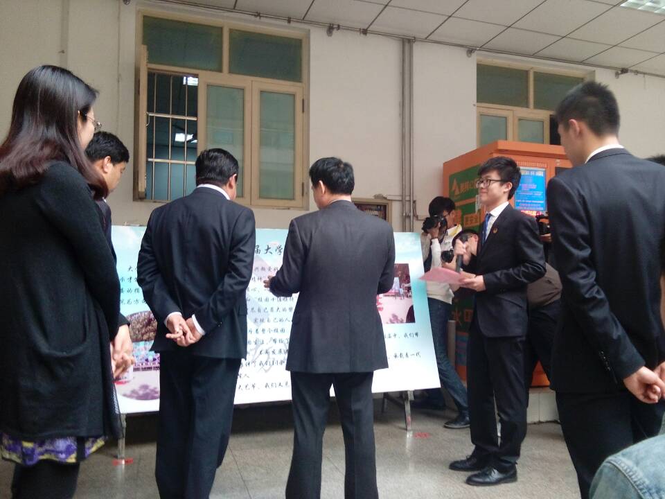 首先,在主持人孙涛精彩的开场白之后,开幕式正式开始。学校领导最先发表讲话,简要讲述了开展科技文化艺术节旨在激发同学们的创新意识以及培养同学们的动手操作能力。之后,各位领导老师参观了各学院的展板。我院的展板内容主要包括数学建模社团,马拉松活动以及去年承办的第五届“校园吉尼斯”活动等。数学建模是一门旨在提高学生利用模型的思想解决综合问题,培养学生的创新意识及团队合作的学科,数学建模社团更是在我院的中占据着举足轻重的地位。由我院带领的代表队曾在全国大学生数学建模竞赛中荣获全国一等奖、省级一等奖等奖项。展板中展示了数学建模社团的社员们在参赛、颁奖以及平时社团活动时的剪影,展现了我院学子们的风采。同时,展板中还展示了“校园吉尼斯”活动和马拉松比赛时的精彩图片。