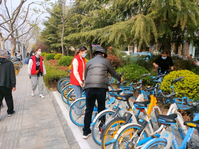 志愿者们一大早就穿着统一的志愿者服装集合来到了新城街道锦城社区,根据具体任务分为三组,每组明确了自己的任务内容后便开始了志愿活动。志愿者们将街道上随意摆放的共享单车搬到规定的地方,并且规劝市民有序停车,在他们的影响下,骑共享单车的市民都非常自觉地将单车放到原位;他们还对商店周围的环境卫生进行了清理,并进行了交通文明劝导活动。经过几个小时的努力,志愿者们将街道整理得干干净净,受到社区领导的好评。