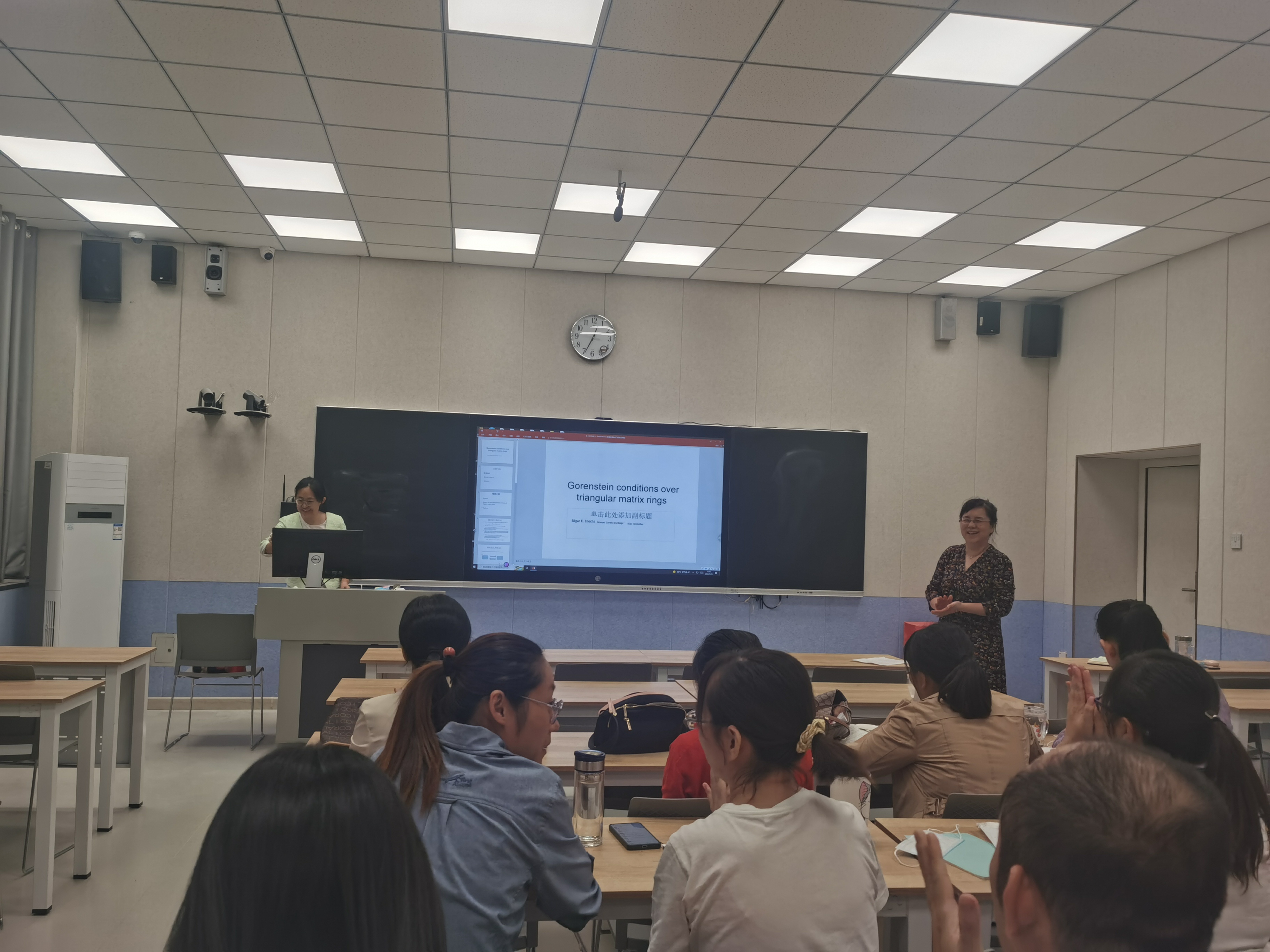 杨春花博士的报告包含了三角矩阵环上的Gorenstein条件,三角矩阵环及相关同调性质以及三角矩阵环上的模类的Gorenstein 条件,以期能与老师们达成更深度的合作。