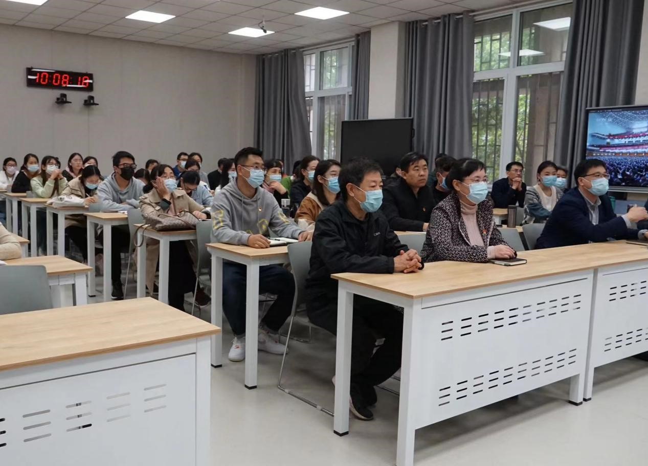 数学与信息科学学院全体党员在人合楼8119会议室,学生代表在人合楼8122教室,共同收听习近平总书记在中国共产党第二十次全国代表大会上的报告。