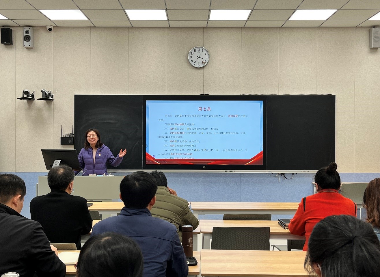 为了进一步规范党徽党旗使用管理工作,推动发挥党徽党旗的政治功能,增强党的凝聚力、战斗力;为推进党史学习教育走深走实,引导全体党员担负起维护党徽党旗尊严的政治责任,数学与信息科学学院党总支于2022年11月4日下午在8119教室组织全体党员开展了《中国共产党党徽党旗条例》专题学习。