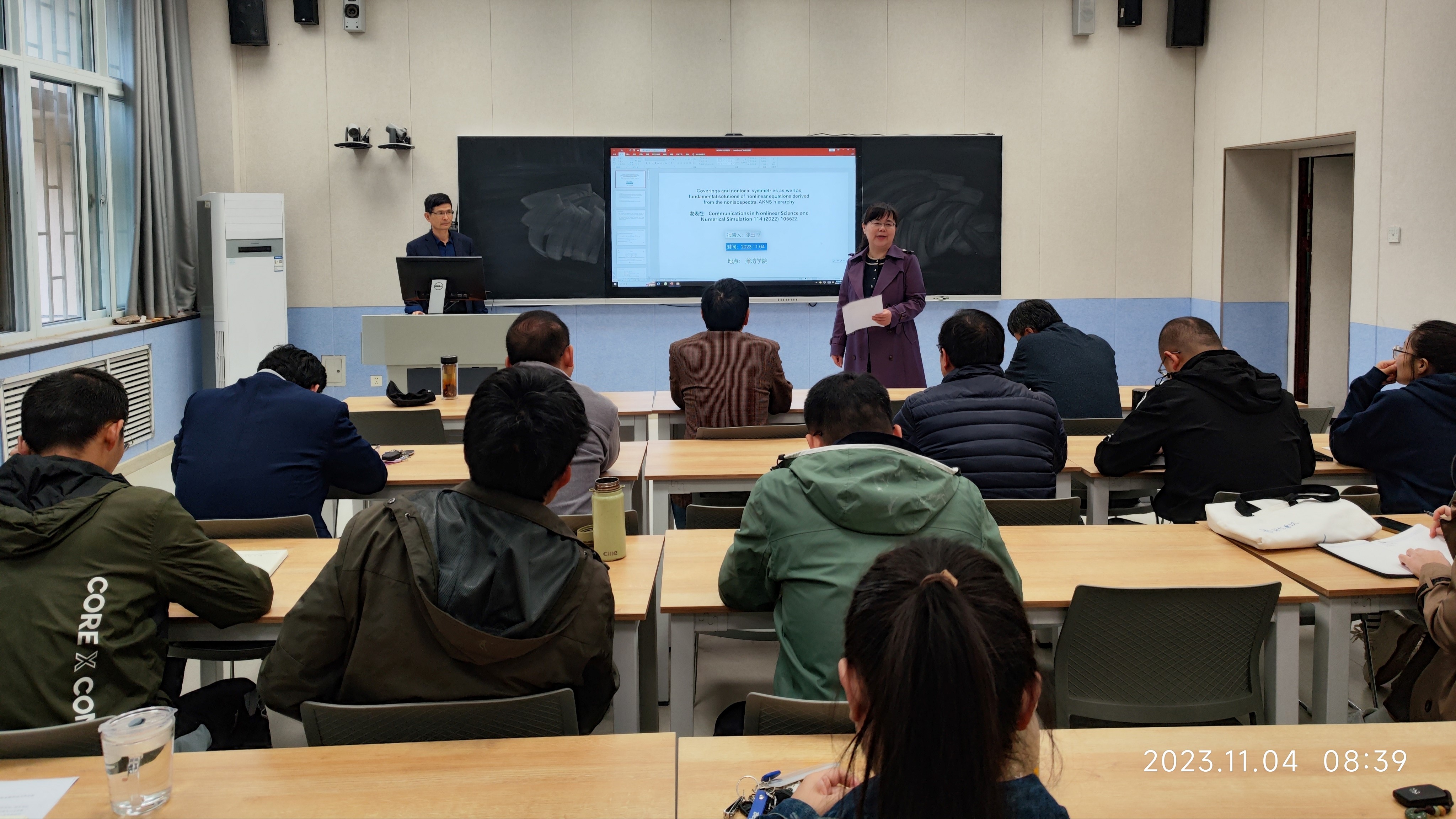 2023年11月4日上午,我院在人合楼8119召开2024年度国家自然科学基金申报推进会。我院院长李梅霞教授、副院长车海涛教授、中国矿业大学数学学院博士生导师张玉峰教授、山东科技大学数学与系统科学学院院长、博士生导师董焕河教授和山东科技大学博士生导师孟新柱教授、全院博士以及拟申报2024年国家自然科学基金项目的教师参加会议,会议由李梅霞院长主持。