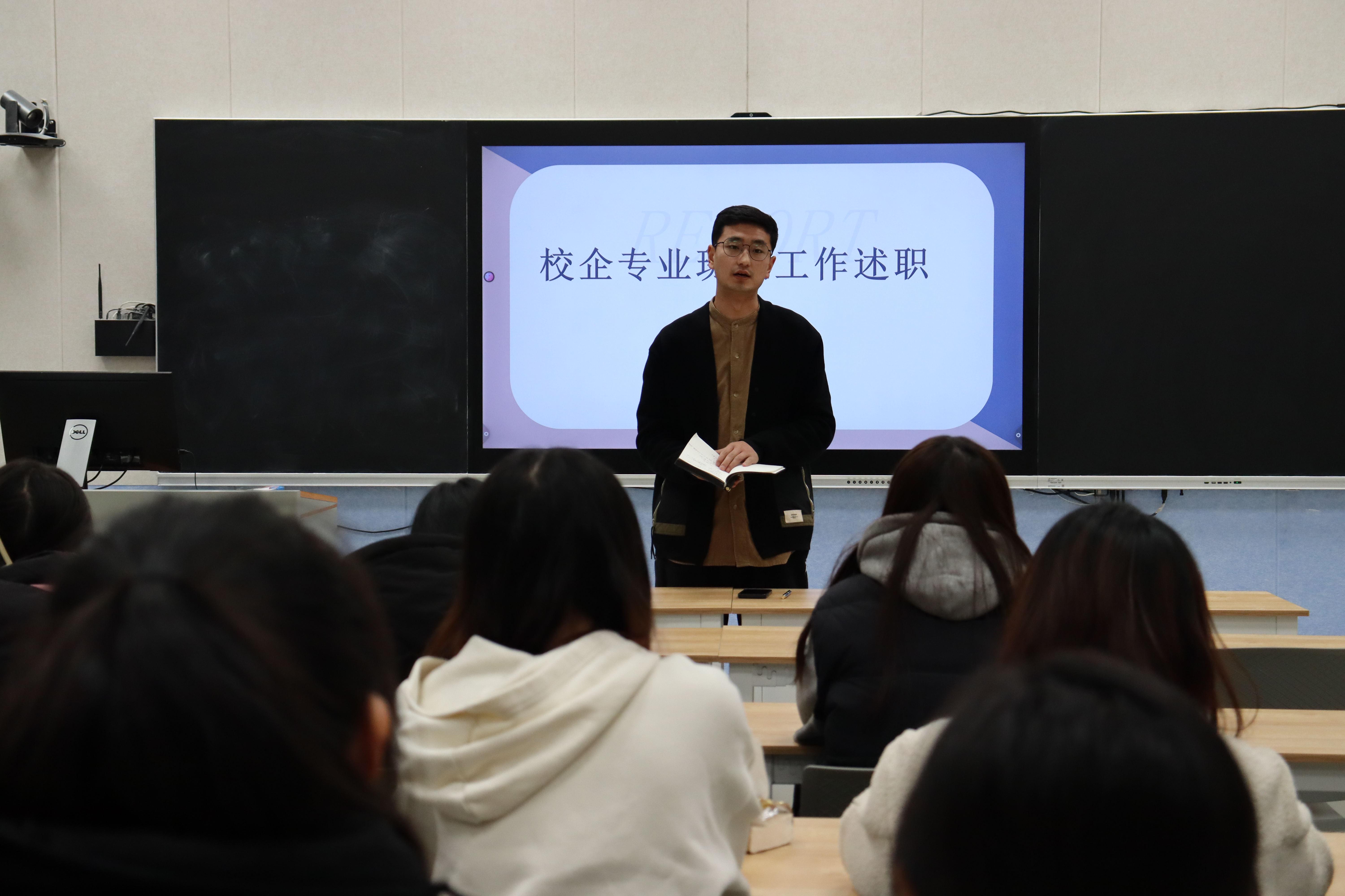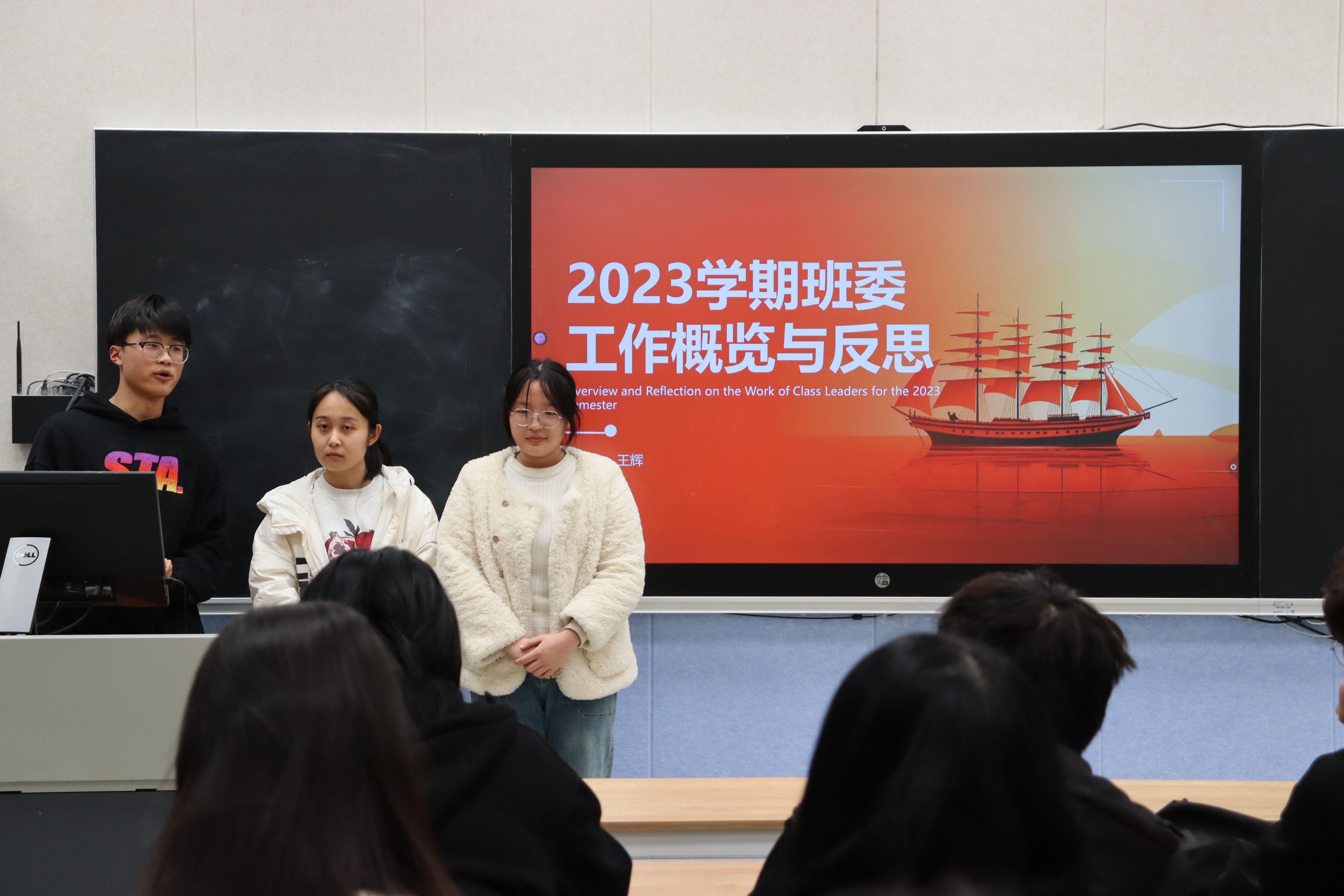 述职亮绩,以评促改。各班班长从班级基本情况、班级成员取得的成绩、本学期工作计划以及个人成长等方面进行汇报;团支部书记则从支部建设、团日活动、志愿服务等方面进行述职;学习委员对班级学习氛围、学习成绩等进行深度剖析。在汇报过程中,学习委员结合同学们的学习成绩和综合测评数据,就班级学情进行了深入分析,从课堂出勤、课堂效果、作业提交、寝室学习氛围等入手,将班委、男女生、宿舍成员等学习情况进行分析,在同专业不同班级之间进行横向对比,同专业不同年级之间进行纵向对比,总结出班级学风建设中的优势和不足。辅导员们对学生干部在班级建设中取得的成绩表示肯定,并指出了需要改进之处,鼓励各班委之间相互交流、相互协作,在工作中保持热情、锻炼能力、争当模范,带领班级取得更大的进步。