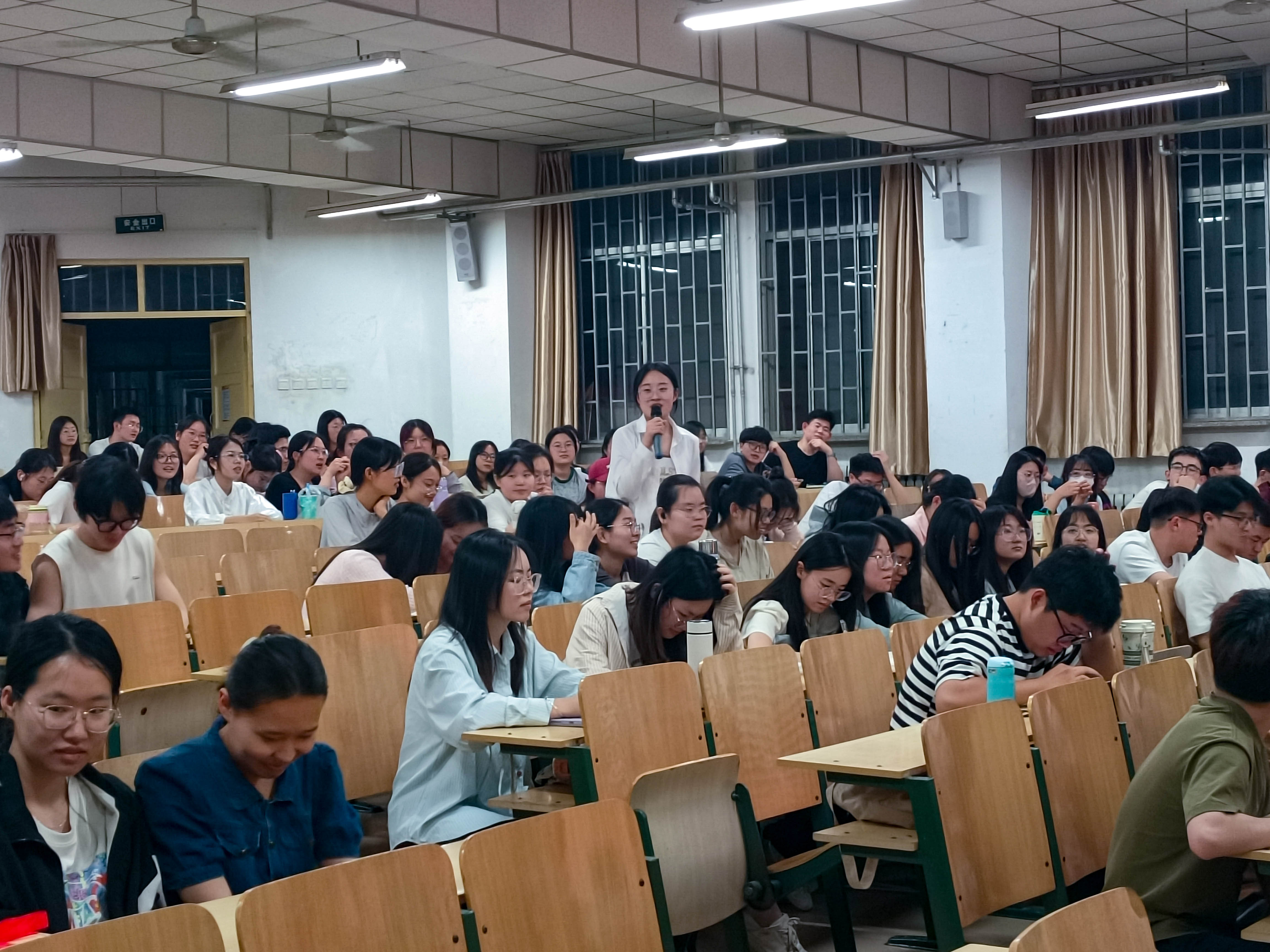 随后, 进行了考研经验分享交流环节。2024届考研成功的7名学生代表从备考策略与规划、学习方法与技巧、心态调整与压力管理、备考过程中遇到的问题与解决方案等方面进行经验分享。提问环节,2025届准备考研学生咨询有关问题,2024届考研代表耐心细致地回答了每一个提问。