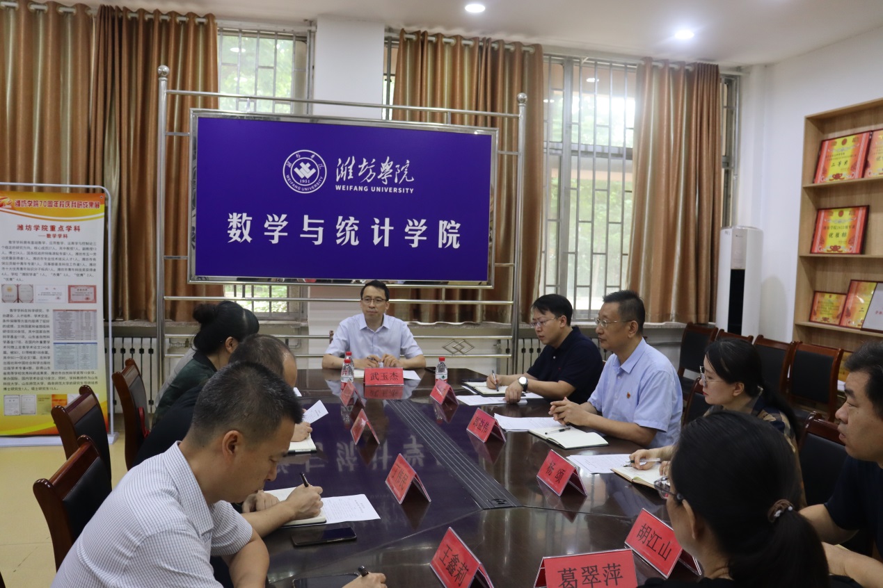 8月26日上午,学校纪委书记武玉杰到数学与统计学院检查开学情况,指导学院工作,科研处处长李庆军、学生工作处副处长葛红丽和学院班子成员、有关科室负责人参加活动。