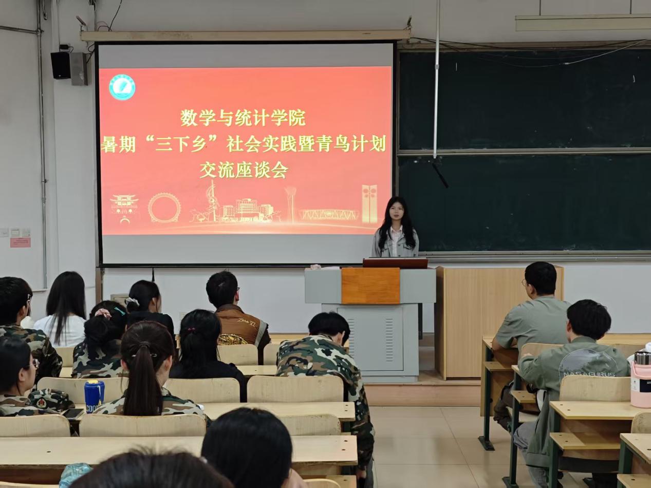 为系统总结暑期社会实践成果,促进经验交流与成果共享,9月24日,数学与统计学院在8112教室举办2025年暑期“三下乡”社会实践暨“青鸟计划”交流会。学院团委负责人出席,社会实践团队代表、“青鸟计划”志愿者以及各年级学生代表参会。