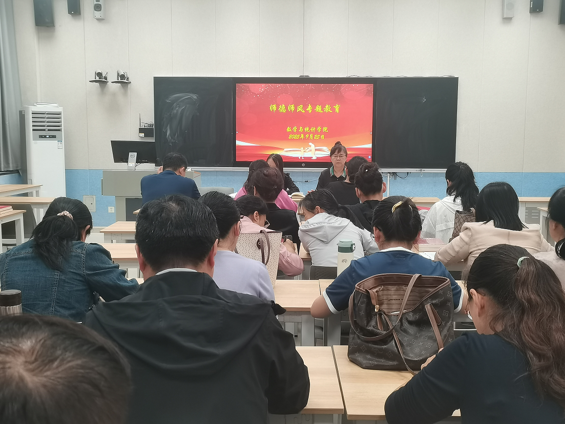 9月25日,我院在“数苑大讲堂”对全体教师开展师德师风专题教育。院长李梅霞主持活动,副书记杨颂领学“习近平给全国特岗教师代表的回信”和“新时代高校教师职业行为十项准则”“潍坊学院教师职业行为负面清单”等内容。