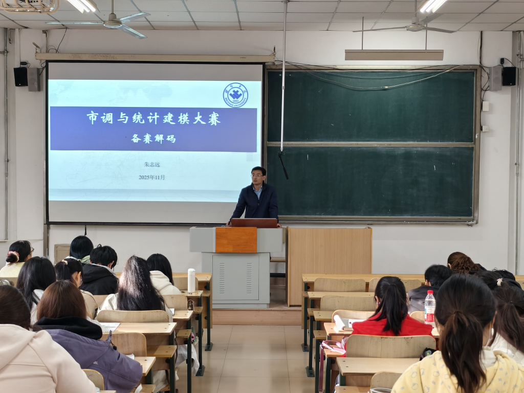 朱志远系统阐释了全国大学生市场调查与分析大赛、全国大学生统计建模大赛两项赛事的核心理念、选题方向、研究方法及报告撰写技巧。他强调,统计建模大赛侧重于通过数学模型挖掘数据内在规律,强调模型的构建、检验与量化分析能力;市场调查与分析大赛则侧重从真实场景中发现问题,综合运用调研方法与工具完成实证研究。结合多年指导经验,他深入浅出地解析了两类赛事的获奖关键要素,为学生提供了切实可行的备赛策略与创新思路。他指出,参与竞赛不仅是对专业知识的综合运用,更是对发现问题、分析问题与解决问题能力的全面锻炼。