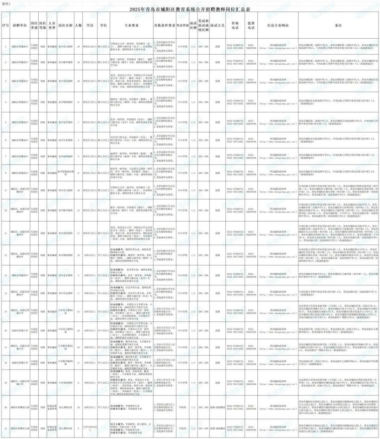 根据事业单位公开招聘有关规定,结合青岛市城阳区教育系统工作需要,2025年青岛市城阳区教育和体育局所属中小学及幼儿园面向社会公开招聘教师215人,其中事业编制中小学教师200人、控制总量备案管理幼儿教师15人(详见附件1《2025年青岛市城阳区教育系统公开招聘教师岗位汇总表》,以下简称《岗位汇总表》)