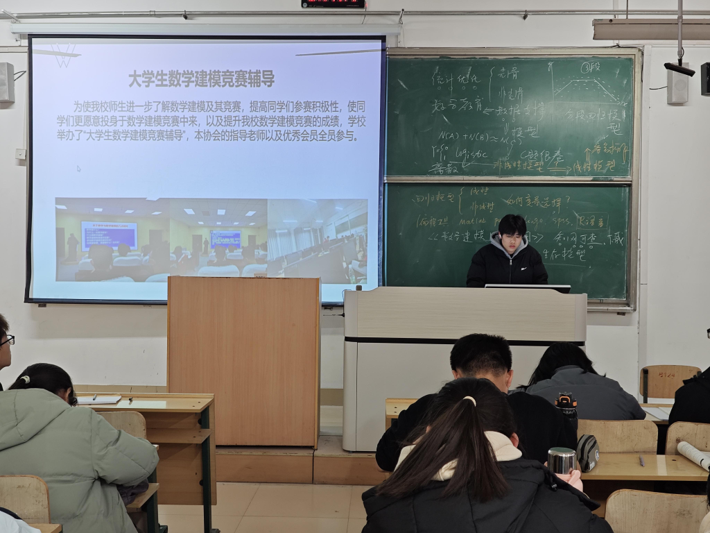 张一鸣就数学建模协会的基本情况作简要介绍。作为学术科技类社团,协会始终以提升成员数学建模与实践能力为宗旨,通过组织系列培训、模拟竞赛等活动,为同学们备赛参赛提供平台支持与专业保障。