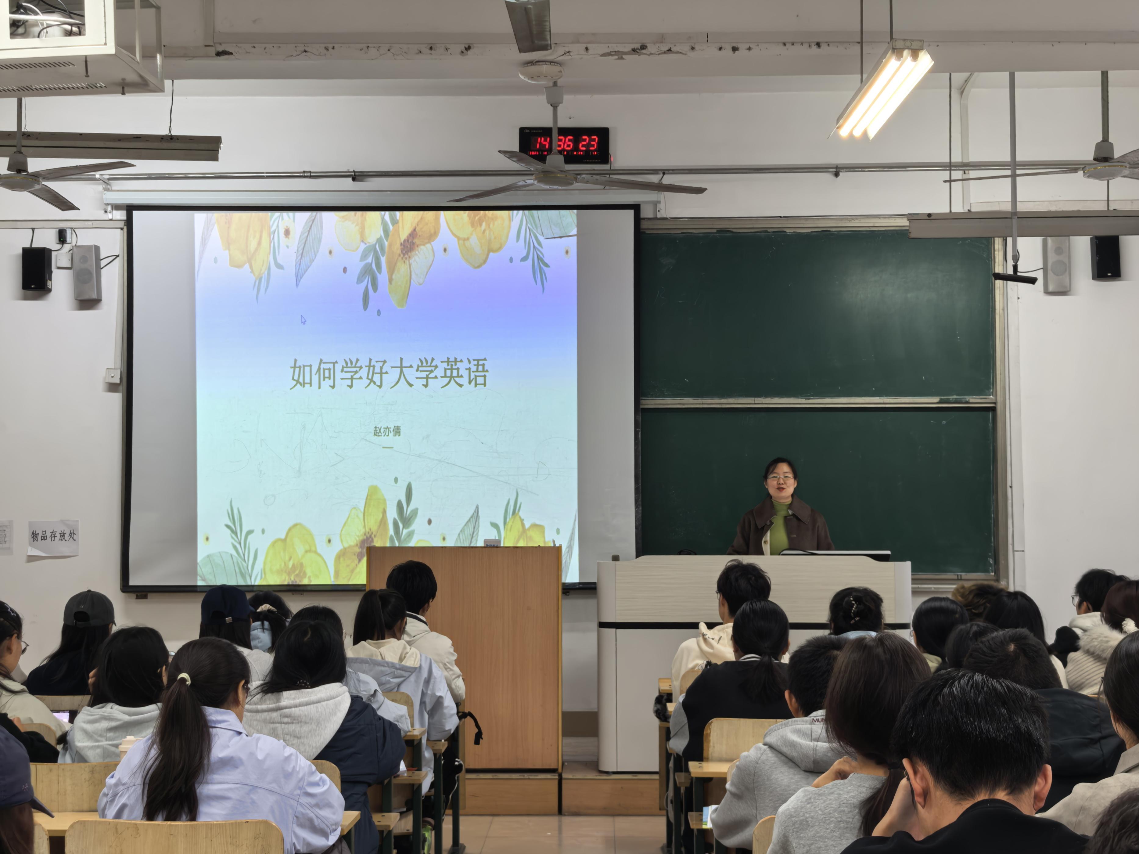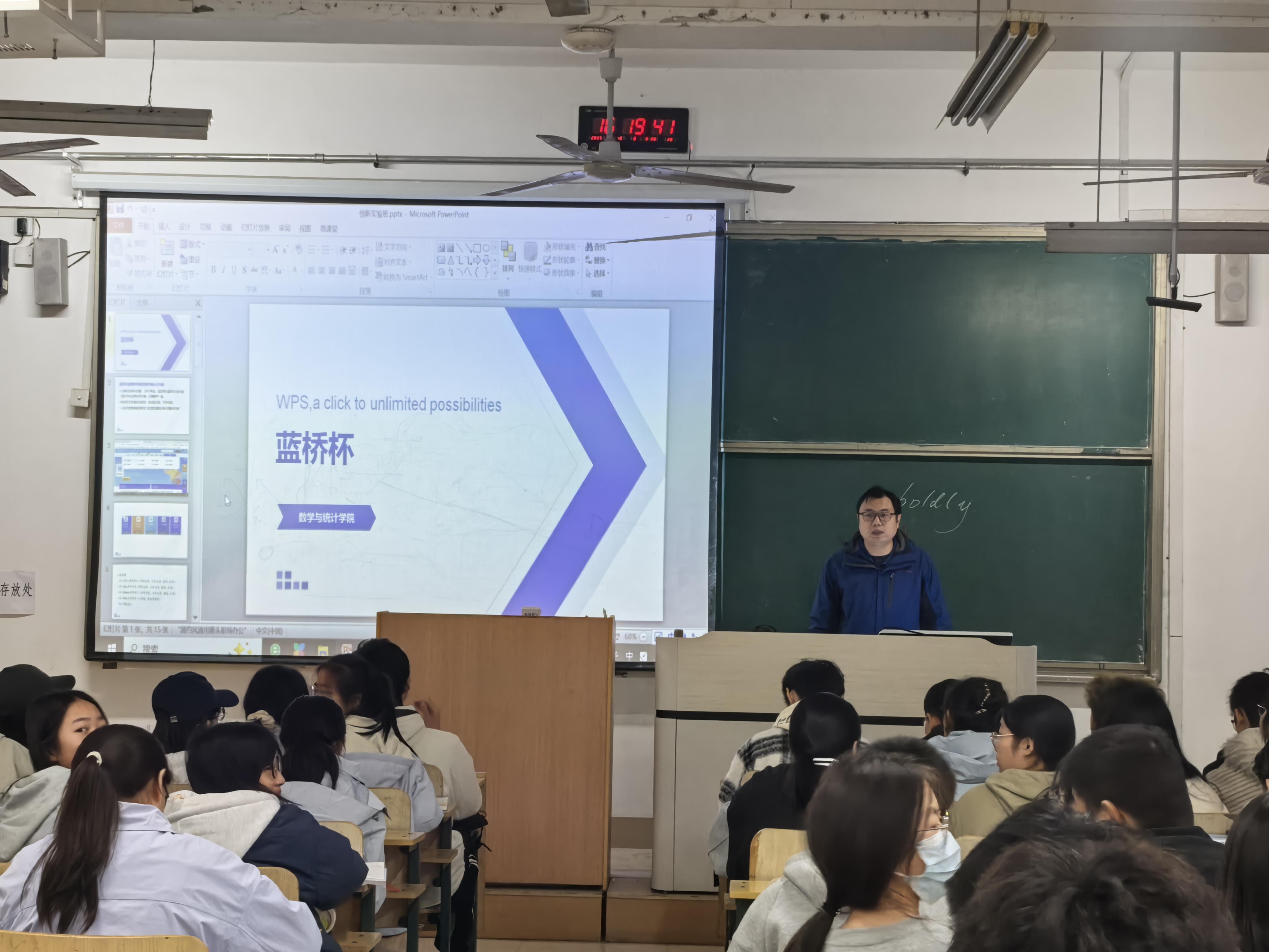 尉爽华介绍了创新实验班的设立初衷、培养目标和班级管理规定。赵亦倩为学生讲解了大学英语学习和四六级备考策略,推荐了实用的学习工具和方法;丁伟民介绍了大学生创新创业训练计划的基本内容、申报流程与支持政策;黄攀则针对蓝桥杯竞赛,讲解了赛制规则与备赛要点。现场学生认真聆听,反响热烈。