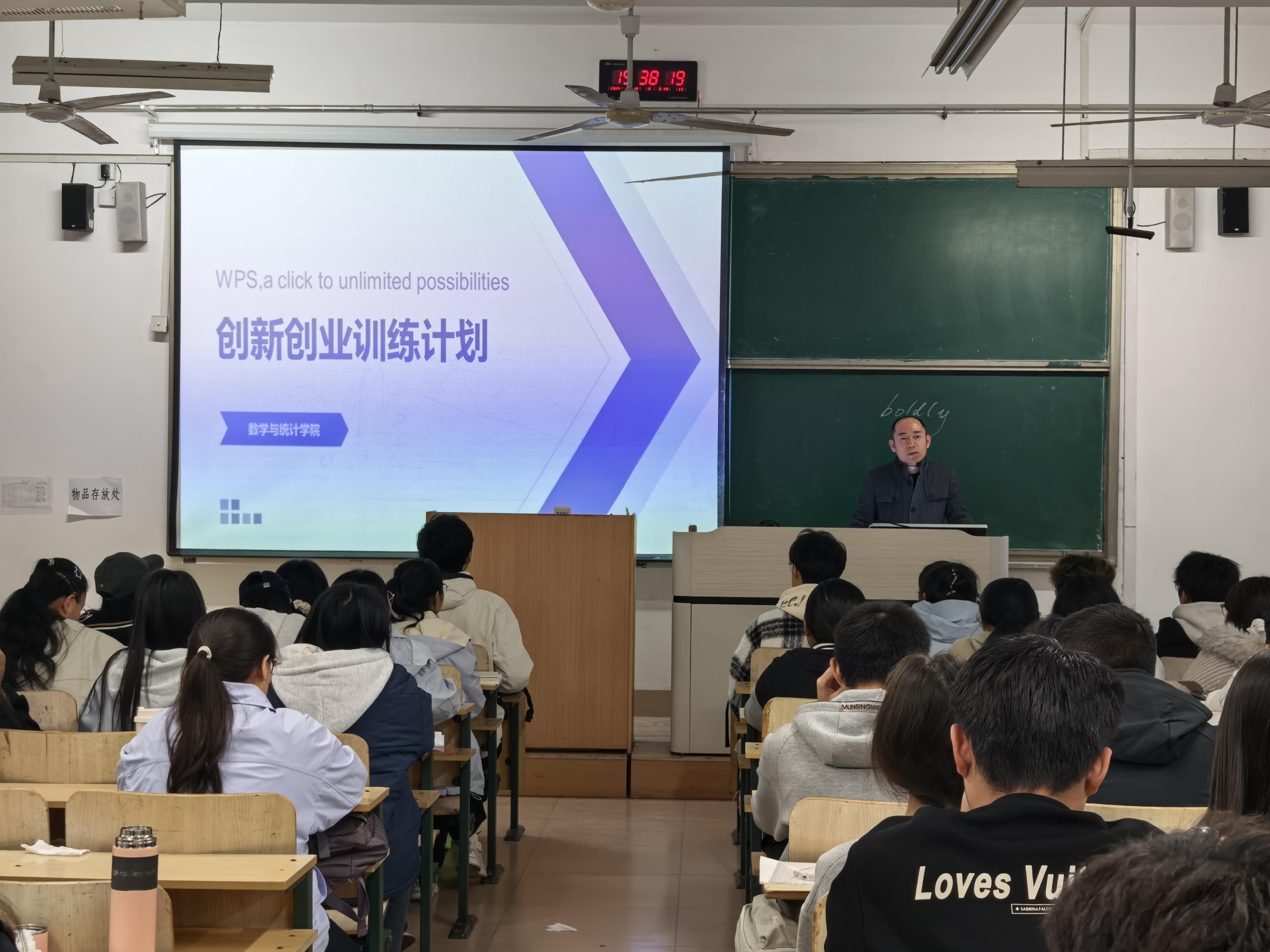 为深入贯彻落实国家加强基础学科人才培养的战略部署,创新数学类专业的培养模式,数学与统计学院自2025级新生起设立本科“创新实验班”(以下简称“实验班”)。10月19日下午,数学与统计学院在人合楼8125教室举行了实验班开班仪式。辅导员尉爽华主持,赵亦倩、丁伟民和黄攀三位老师主讲,实验班全体学生参加。