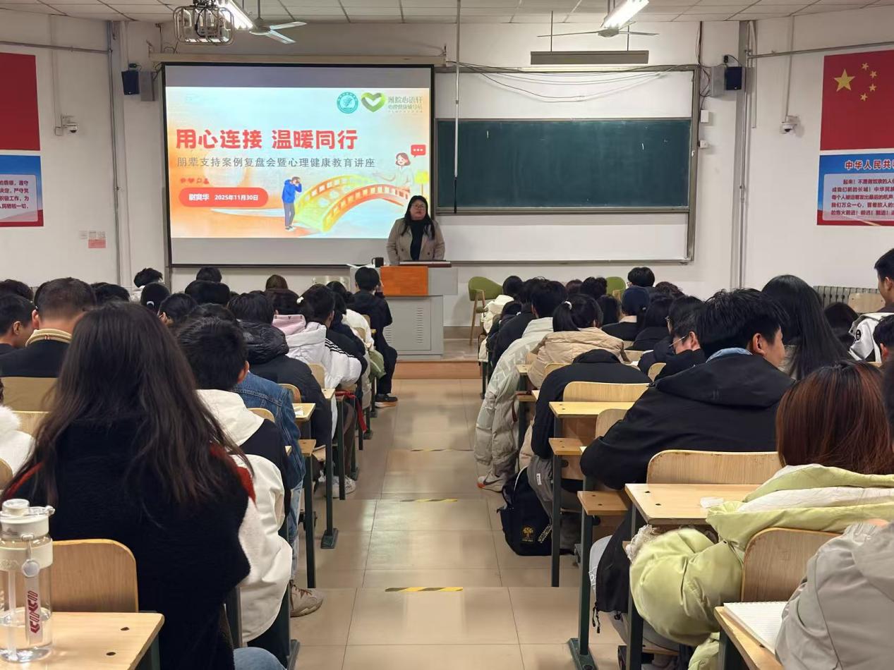 为进一步加强学院心理健康教育工作队伍建设,提升朋辈心理工作者的专业素养与服务能力,11月30日晚,数学与统计学院在人合楼8112教室举办“用心连接,温暖同行”朋辈支持案例复盘会暨心理健康教育讲座。本次讲座由数学院“心语轩”心理辅导站站长尉爽华主讲,各班级心理委员、宿舍心理健康信息员及团学组织心理健康部成员参加。