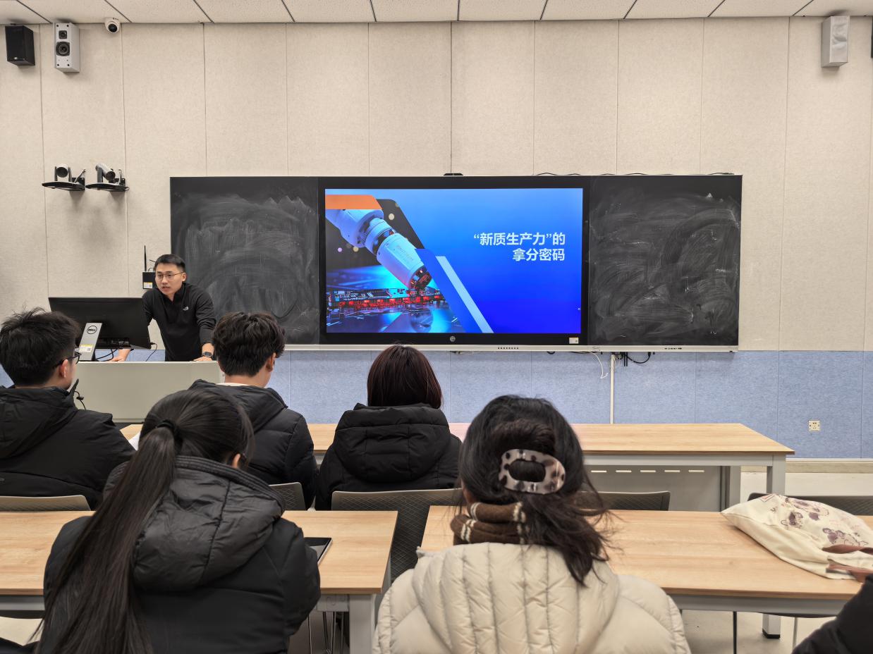 于振山系统梳理了“挑战杯”赛事的发展脉络,详细解读了“大挑”与“小挑”的定位差异,并介绍了国创赛多赛道并行的特色及其主办背景。他结合“新质生产力”这一时代课题,激励同学们依托所学专业,主动投身科技创新与创业实践,在赛事历练中提升综合能力、实现自我成长。