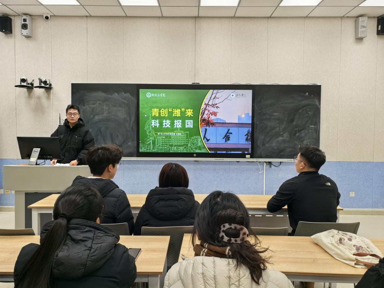 为深入学习贯彻习近平总书记重要回信精神,落实对大学生创新能力的培养要求,12月4日下午,“潍”来之声宣讲团走进数学与统计学院,在数苑大讲堂开展以“青创‘潍’来,科技报国”为主题的宣讲活动。机械与自动化学院团委副书记于振山主讲,现代农学院王国起、法学院任则旭、计算机工程学院刘蕴萱三位宣讲成员分享,学院2024级学生代表参加。