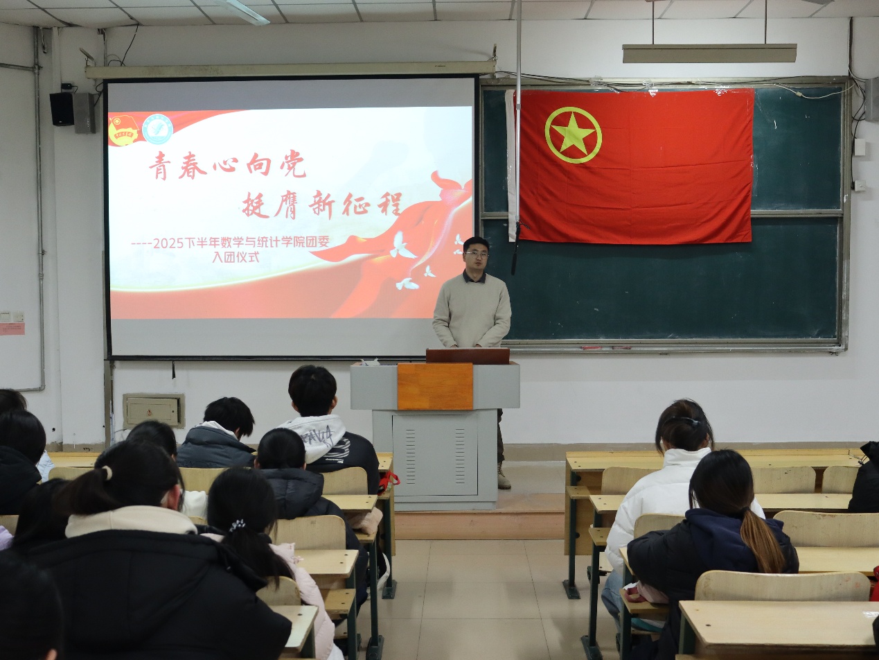 为进一步加强共青团组织建设,增强团员归属感与荣誉感,12月5日晚上,数学与统计学院在人合楼8112教室举行2025年下半年新团员入团仪式。团委副书记宋志鹏出席,各年级团支书、优秀团员代表以及下半年新团员参加仪式,团学组织主席团成员李佳欣主持。
