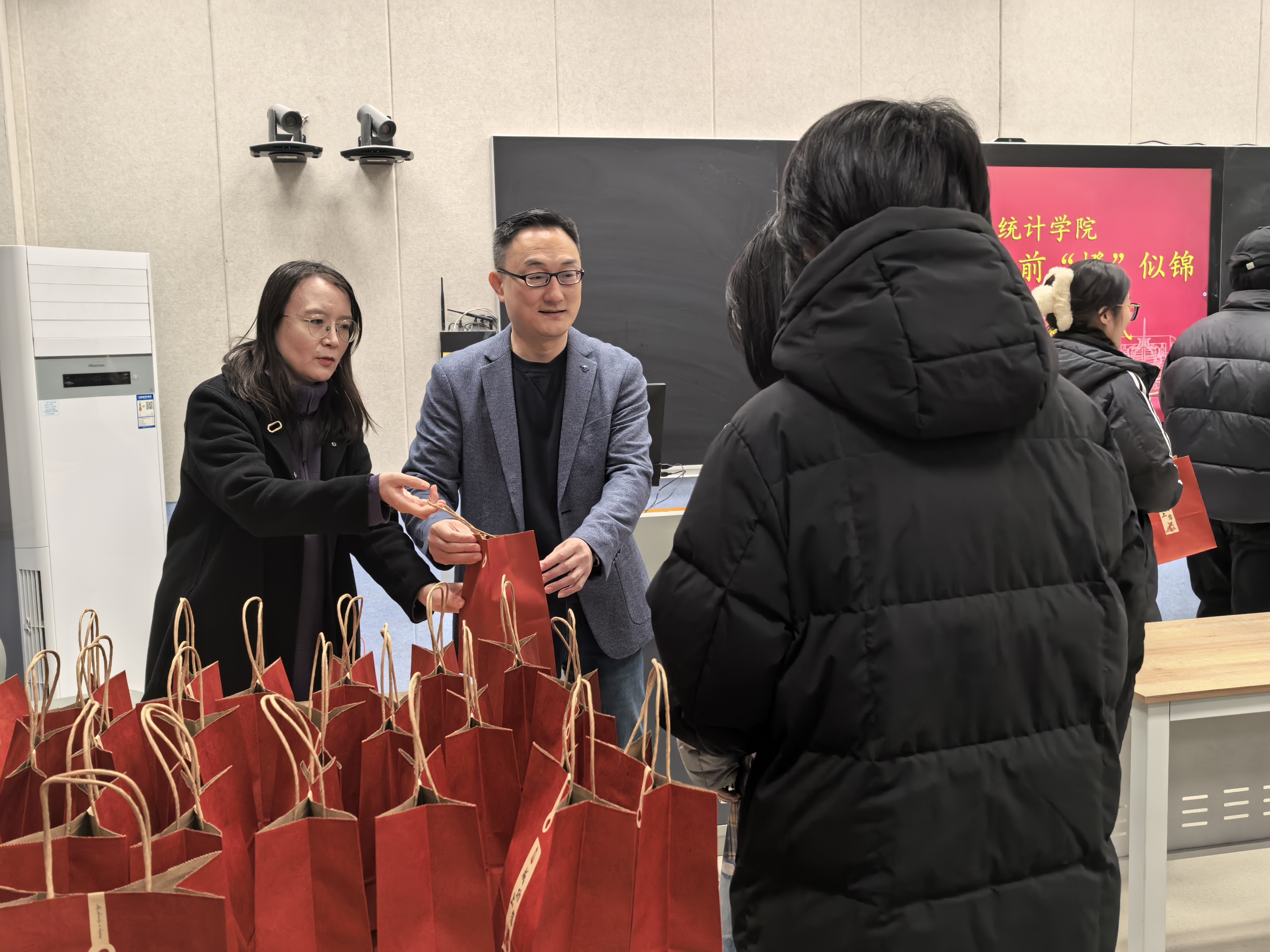 为助力考研学子缓解备考压力、提振冲刺士气,12月12日上午,数学与统计学院在人合楼“数苑大讲堂”举行“‘橙’功上岸,前‘橙’似锦”考研“加油包”发放仪式。学院班子成员出席活动,学工办主任王鑫莉主持。