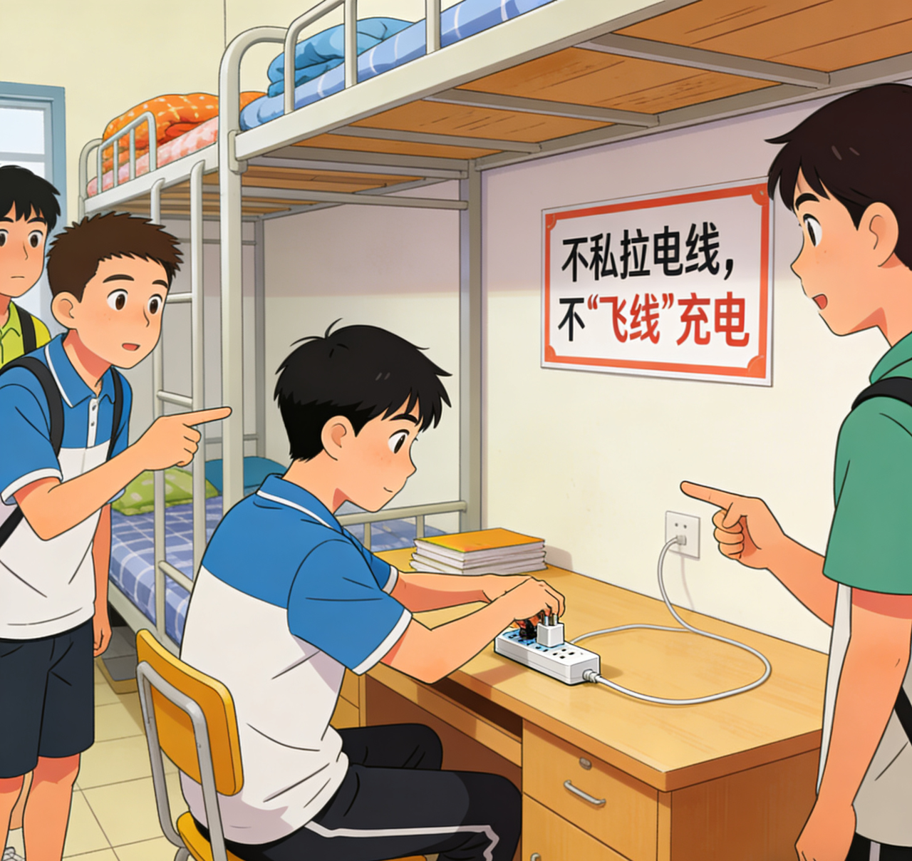 ①不私拉电线,不“飞线”充电,插线板远离被褥等易燃物;