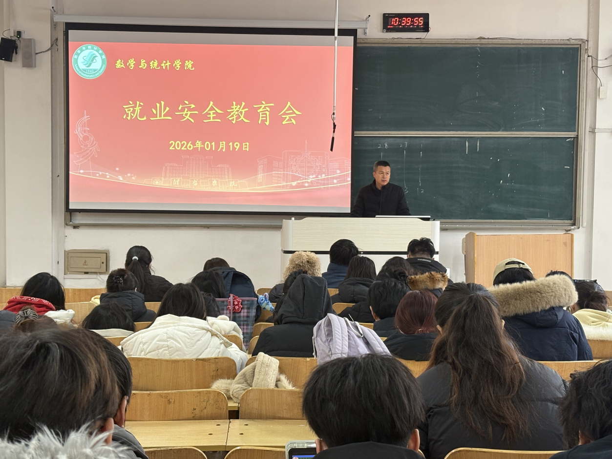 2026119日,数学与统计学院人合楼8122教室组织召开2026届毕业生就业安全教育培训会旨在增强毕业生就业安全意识,防范求职风险全体2026毕业生参加培训,学生工作办公室主任王鑫莉主讲。