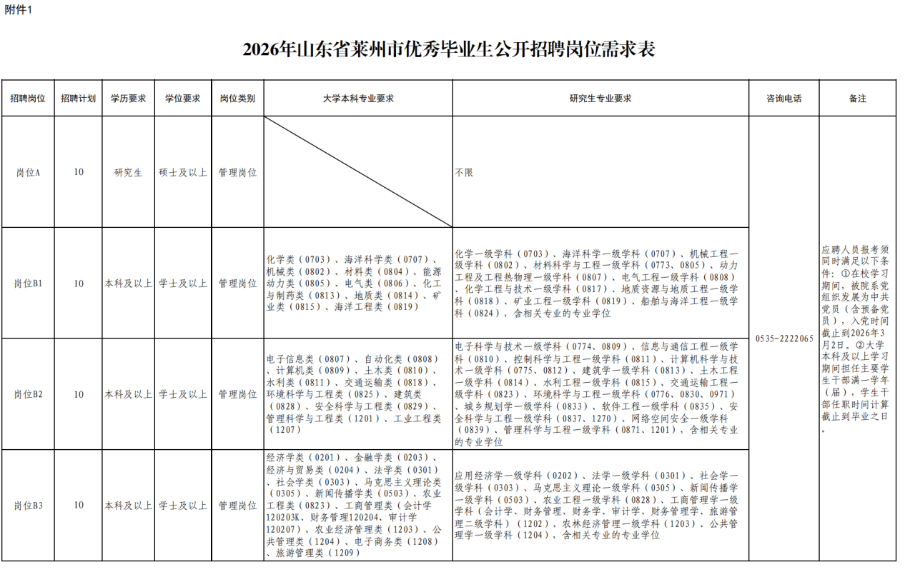 2026年山东省莱州市优秀毕业生公开招聘公告