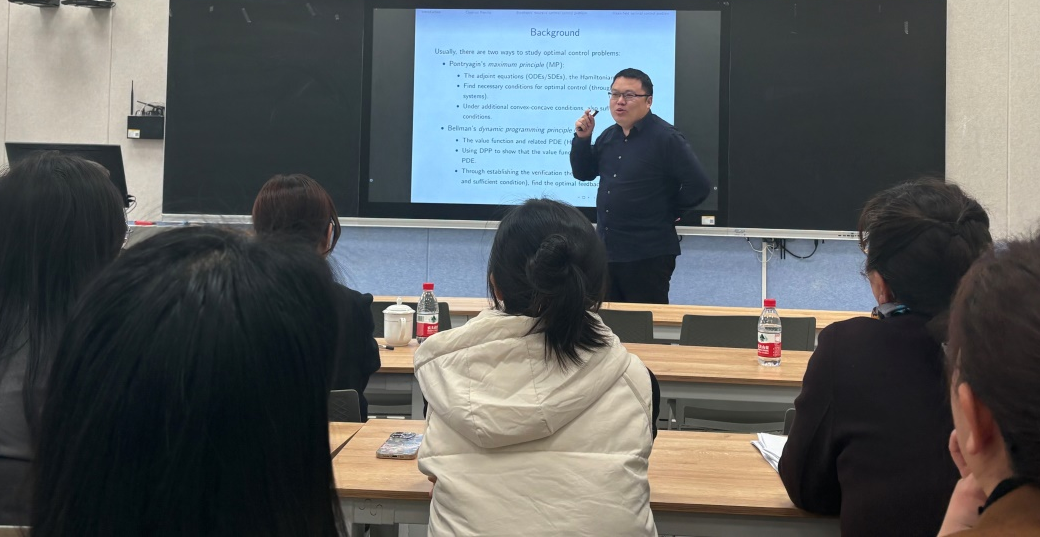 聂天洋教授回顾了随机最优控制问题中最大值与动态规划原理的关联成果,探究McKean-Vlasov型随机微分方程驱动的最优控制问题中二者联系,建立值函数导数与一、二阶伴随方程的关系,为随机控制研究提供重要理论支撑。