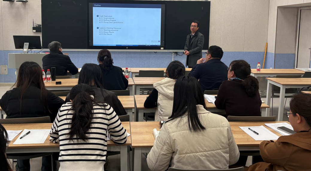 王建锋教授的报告,阐释了图的拉普拉斯匹配多项式的组合与代数性质,介绍其作为所有符号图拉普拉斯特征多项式平均值的核心定义,为图谱理论、图多项式研究提供宝贵思路。
