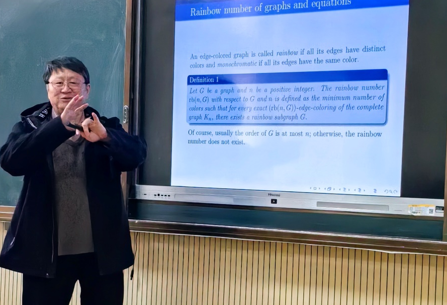 李学良教授以《方程的彩虹数和Gallai-Rado数》为题,给出部分二元函数方程彩虹数与Gallai-Rado数的精确值,阐释了着色过程中彩虹解、单色解的出现条件,还针对非线性二元函数方程彩虹数计算提出有效算法,为相关研究提供了实用工具。