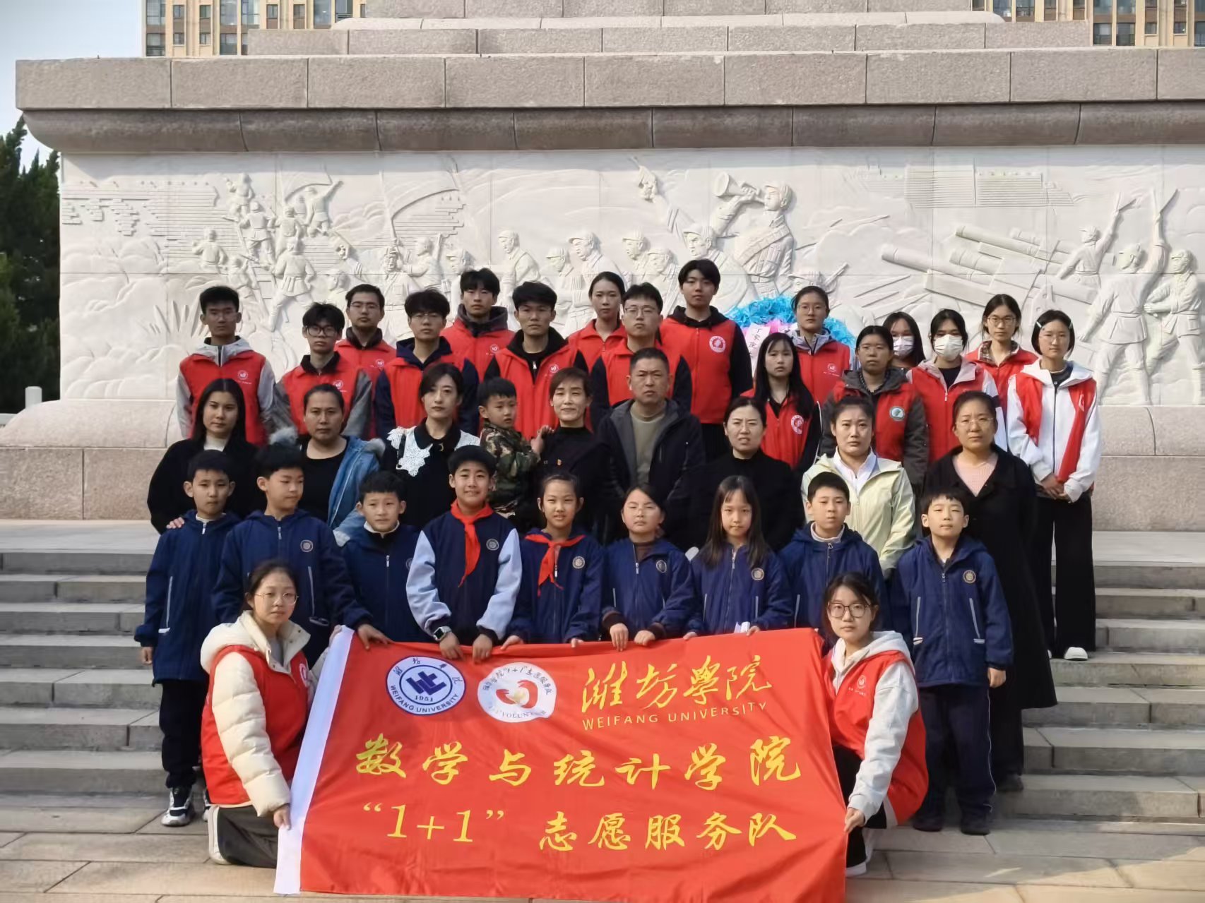 为深切缅怀革命先烈,赓续红色精神,3月21日,数学与统计学院“1+1”志愿服务队与大虞社区少年之家共同前往潍坊市烈士陵园,开展“缅怀先烈伟绩,传承红色精神”主题扫墓志愿服务活动。