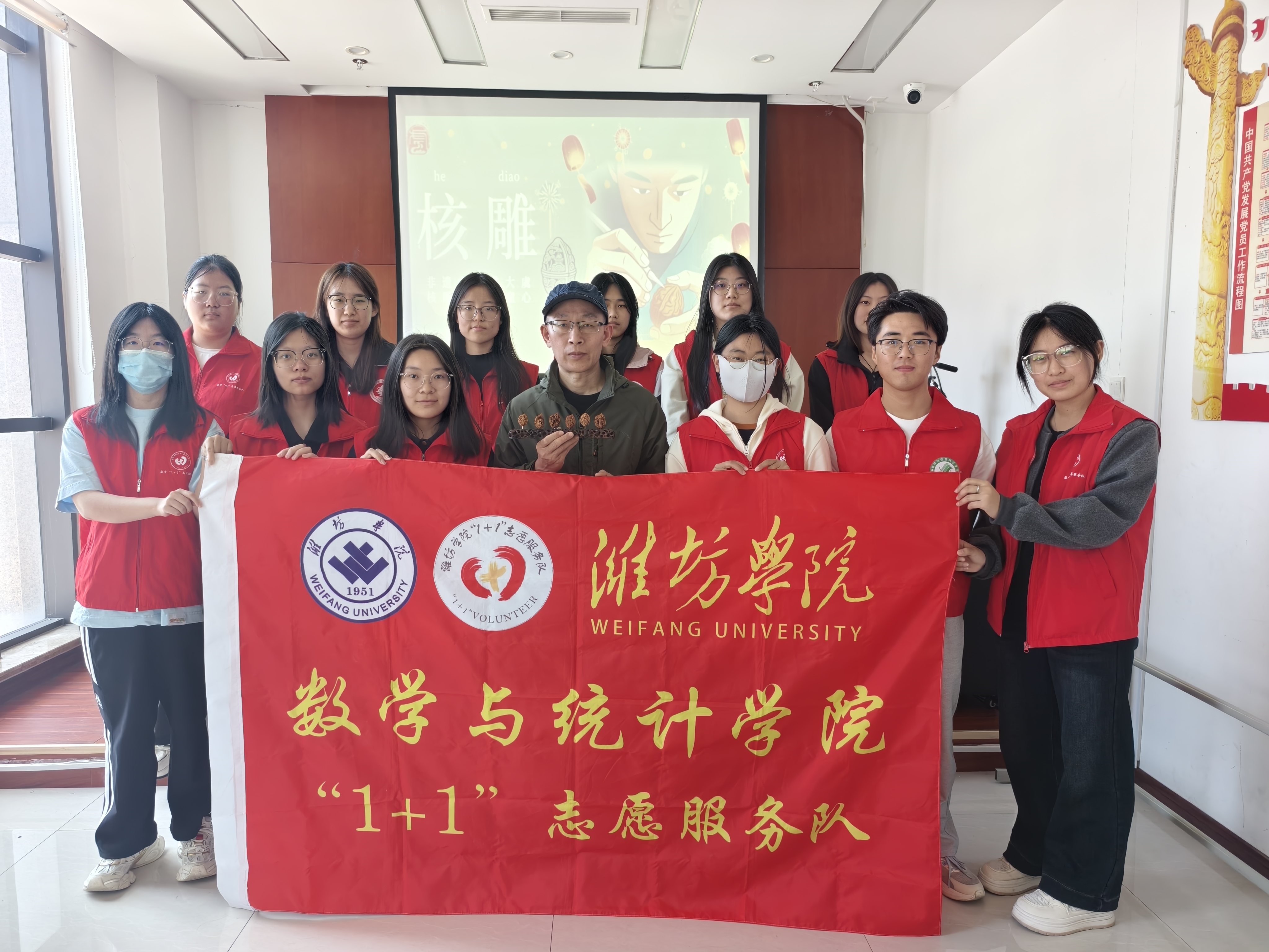 为深入挖掘中华优秀传统文化内涵,以青年视角探寻非遗传承路径,4月12日,数学与统计学院“1+1”志愿服务队走进大虞社区,开展“指尖传非遗,核雕润匠心”专题调研学习活动。志愿者们在聆听与观察中梳理技艺脉络,在访谈与记录中体悟匠心精神。